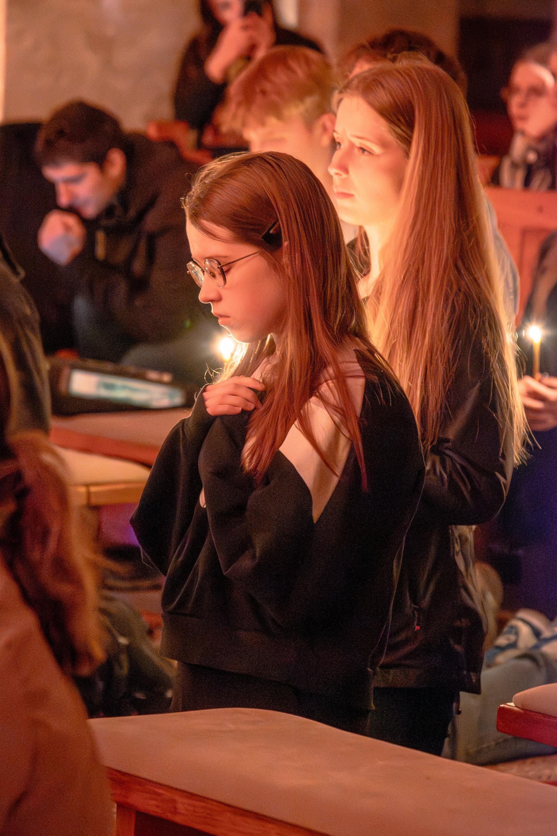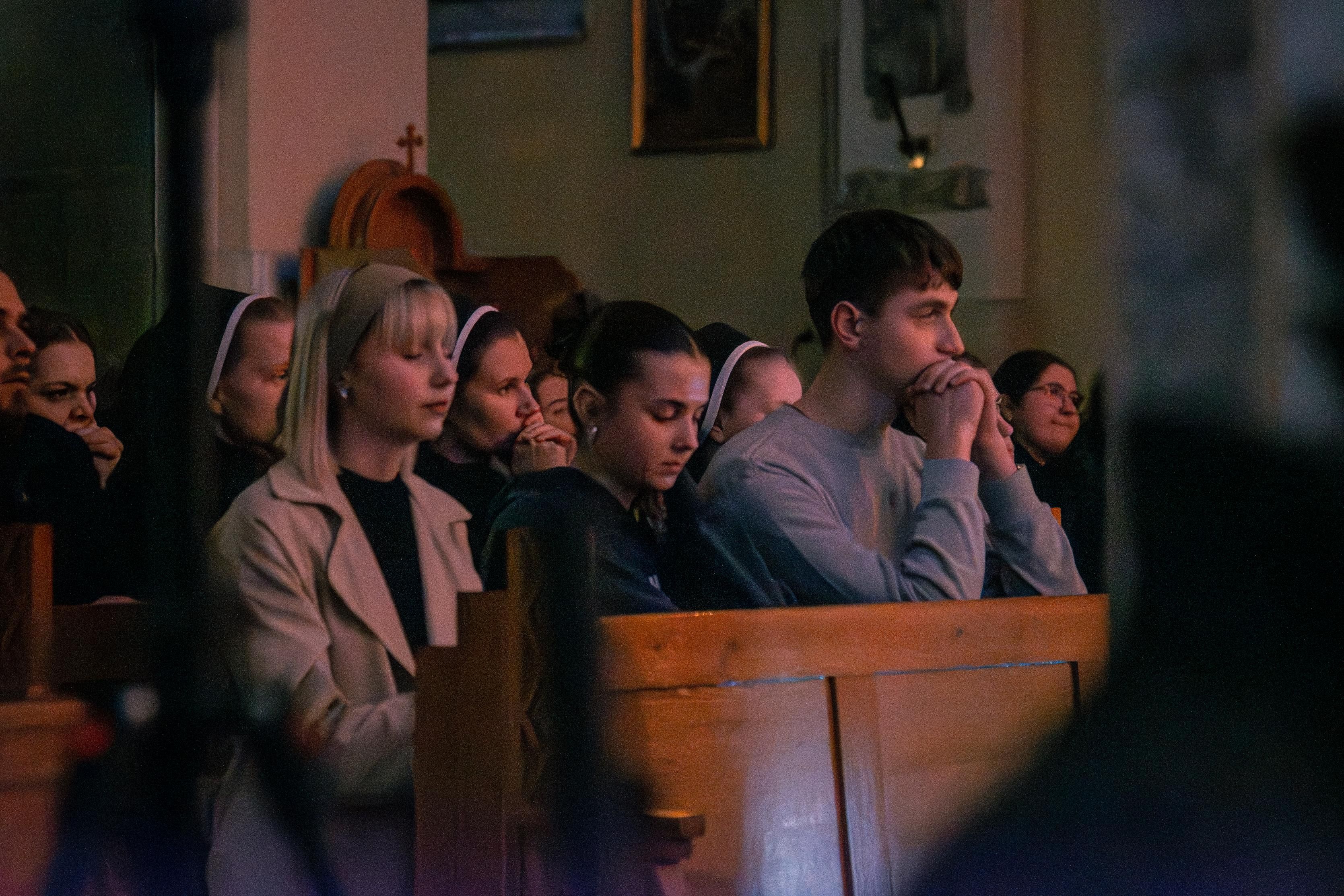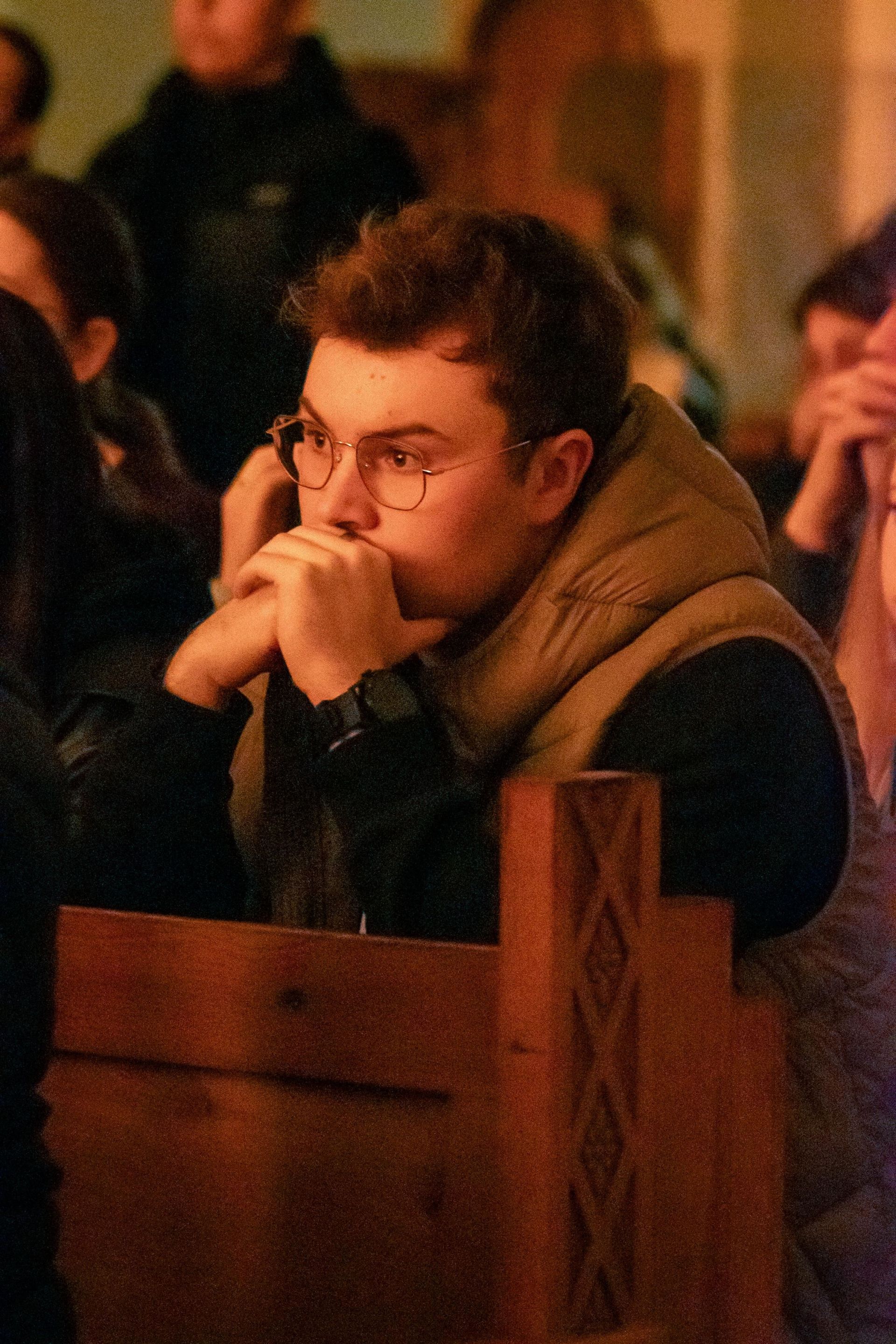 Po katechezie każdy z nas zapalił swoją świecę od tego jednego płomienia i z nią w dłoni podszedł przed Najświętszy Sakrament. To był moment ciszy, szczerości i oddania tego wszystkiego, co w nas „pomiędzy” – niepewne, niedokończone, trudne do zrozumienia.