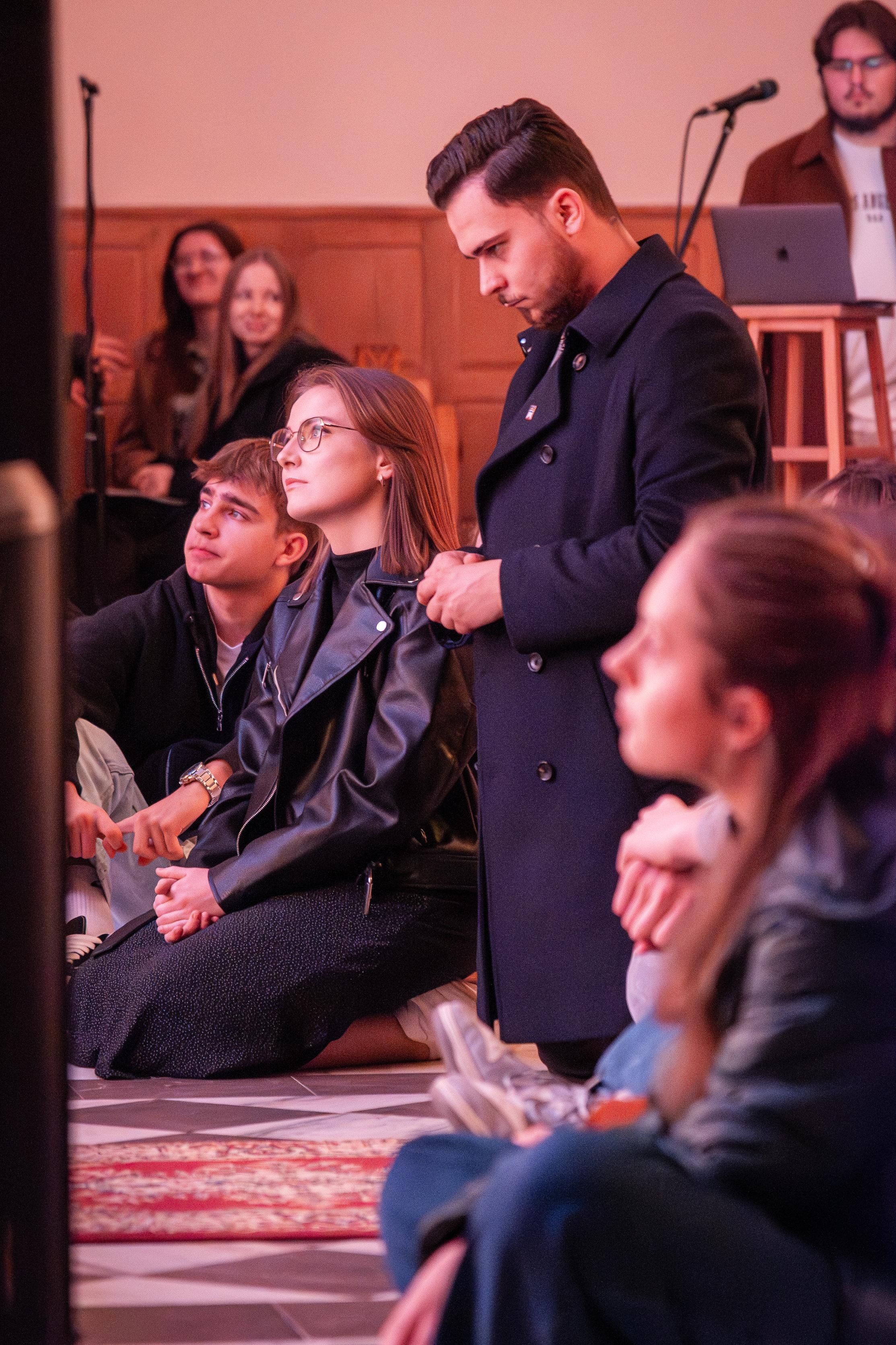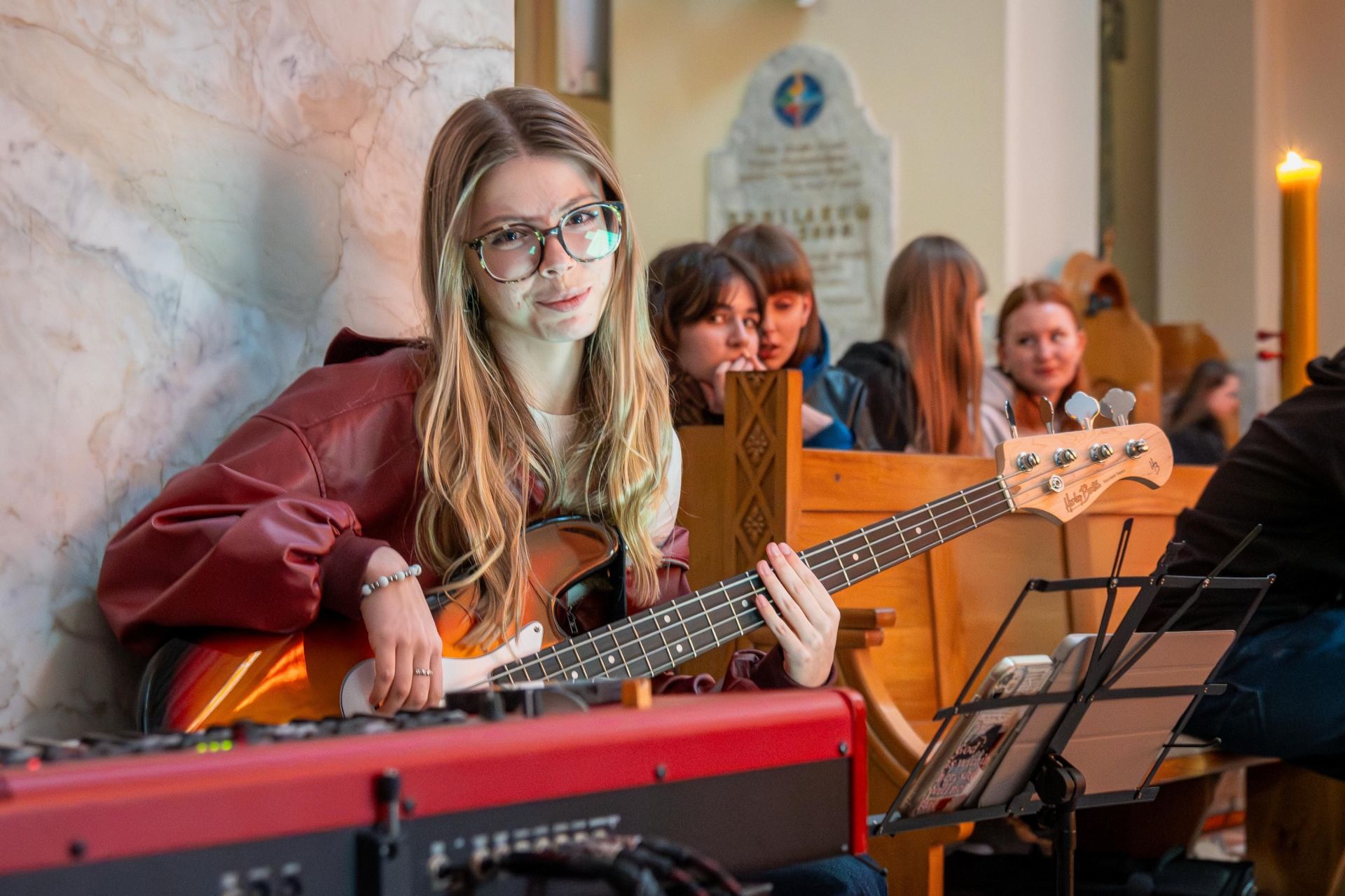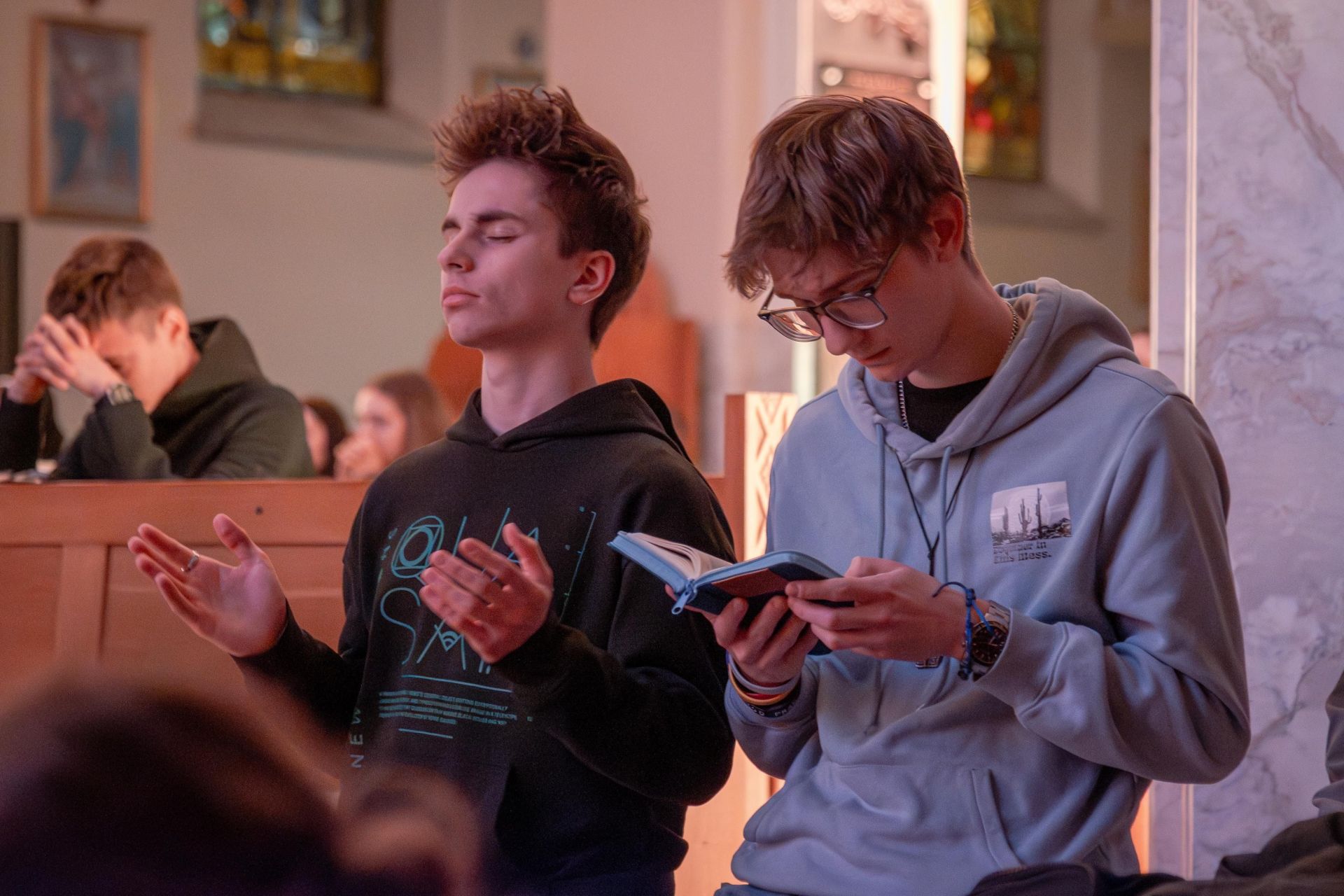 Po katechezie każdy z nas zapalił swoją świecę od tego jednego płomienia i z nią w dłoni podszedł przed Najświętszy Sakrament. To był moment ciszy, szczerości i oddania tego wszystkiego, co w nas „pomiędzy” – niepewne, niedokończone, trudne do zrozumienia.