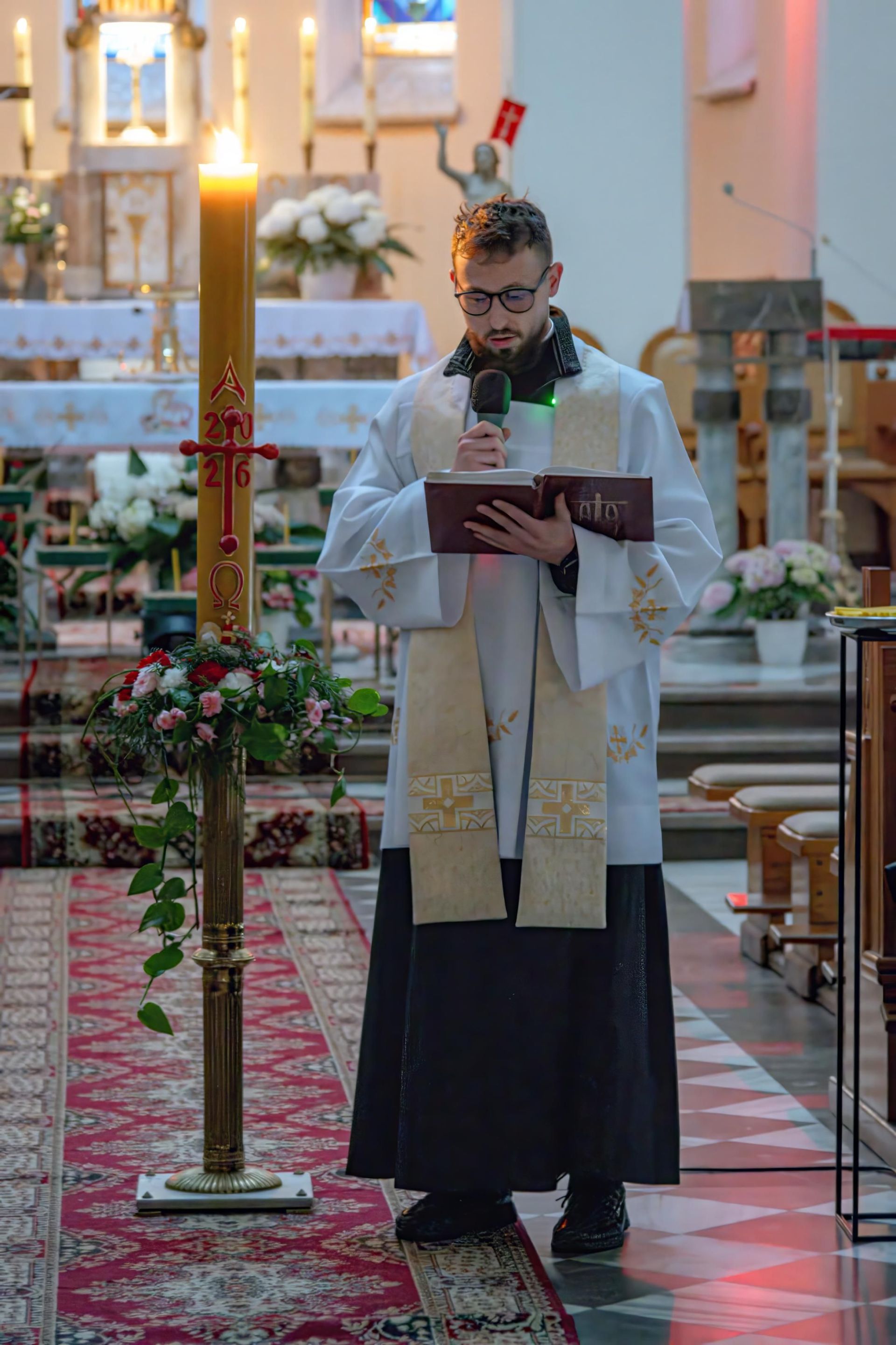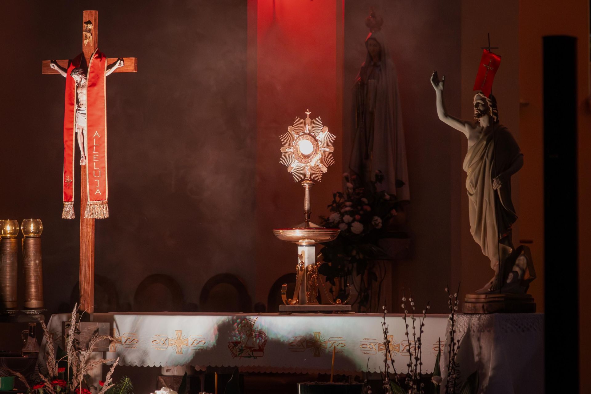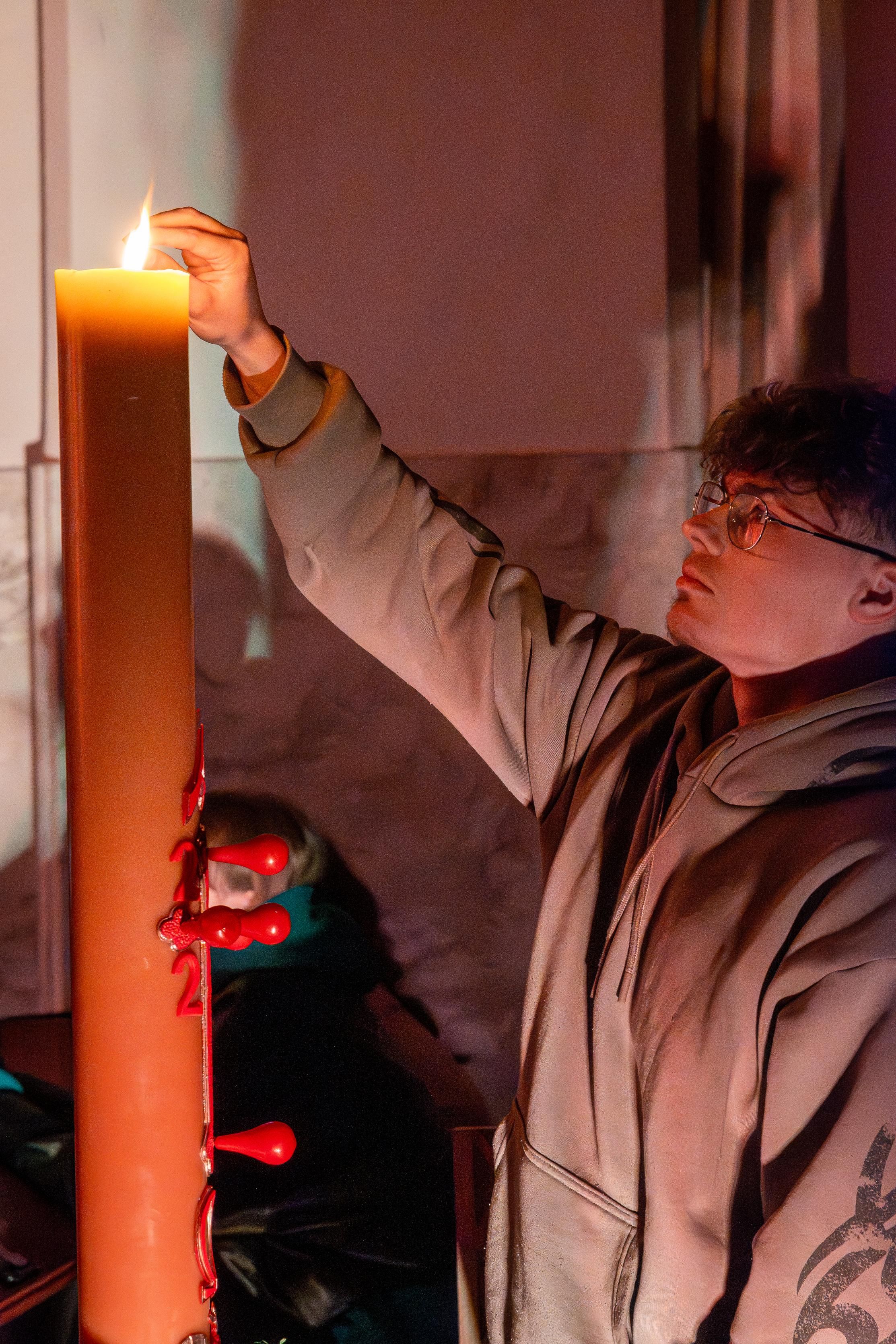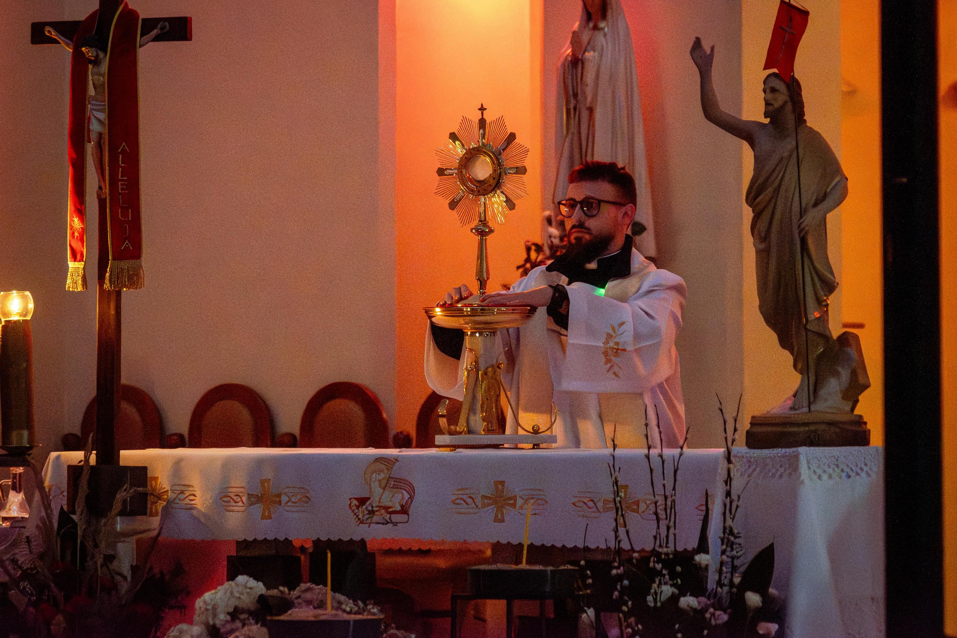 W centrum kościoła stał paschał – jedno światło pośród ciemności. Prosty znak, który mówił więcej niż wiele słów: nawet jeśli czegoś nie rozumiemy, On jest. Może nie zawsze tak, jak się spodziewamy. Może nie od razu. Ale nigdy nas nie zostawia.