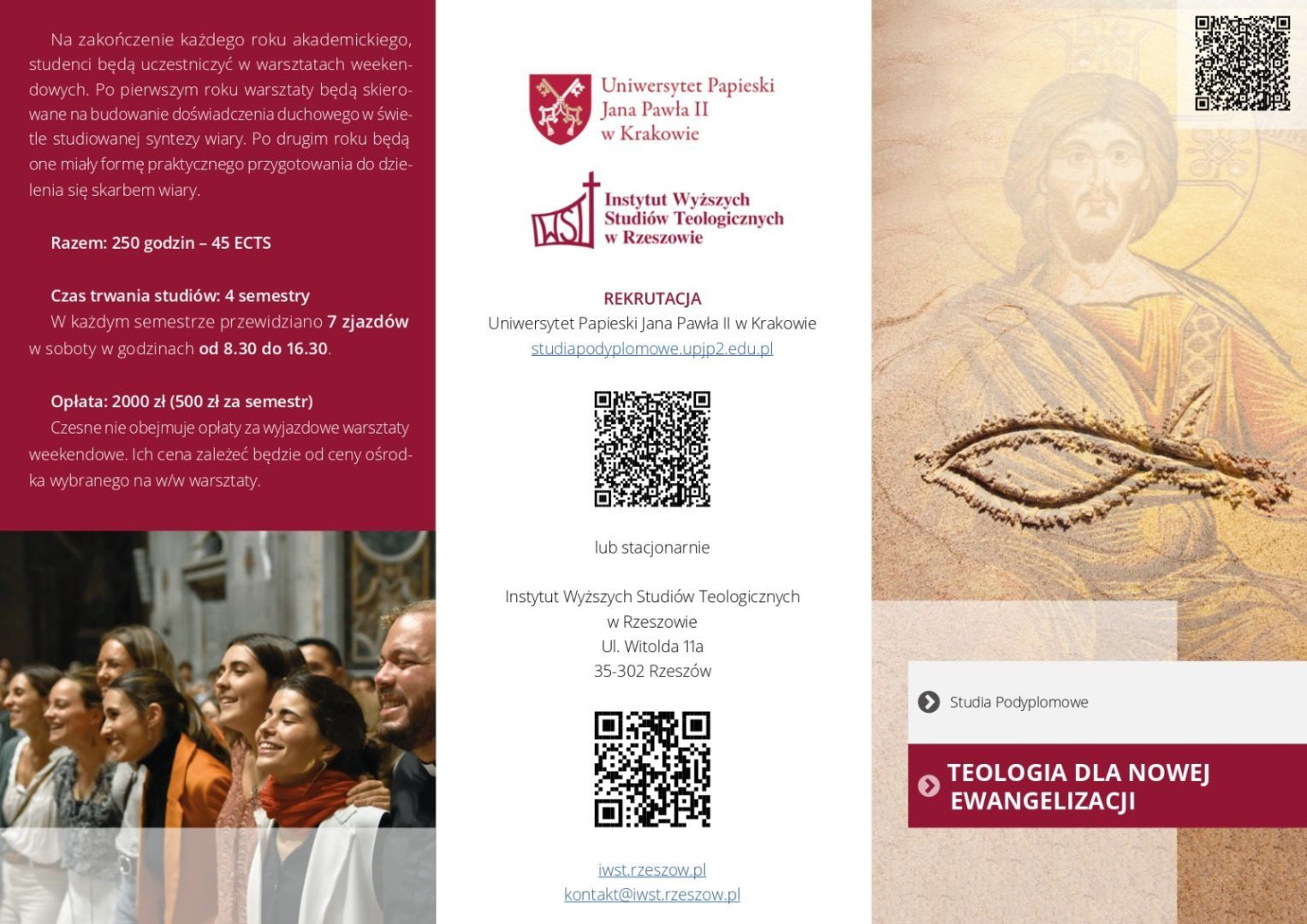 Studia Teologia dla nowej ewangelizacji nie tylko dają możliwość zdobycia wiedzy teologicznej przekazywanej przez najlepszych specjalistów oraz spotkania wspaniałych ludzi, ale także pozwalają uzyskać dyplom Uniwersytetu Papieskiego Jana Pawła II w Krakowie.