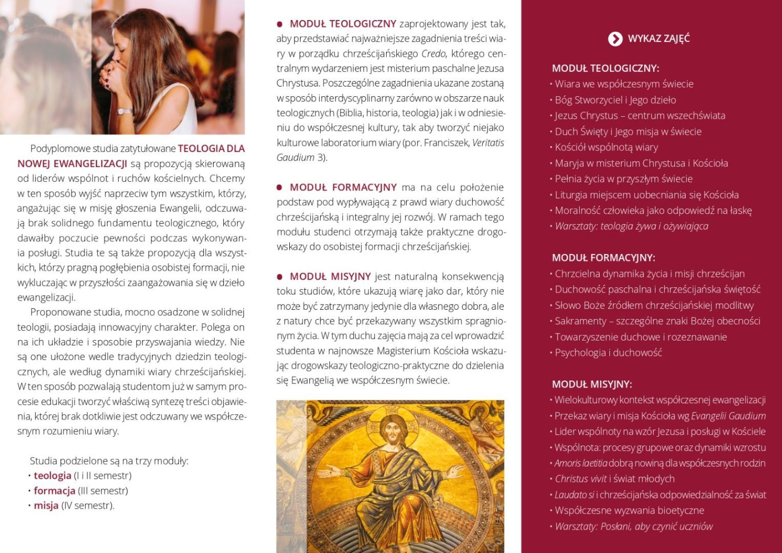 teologia (I i II semestr), formacja (III semestr) i misja (IV semestr).