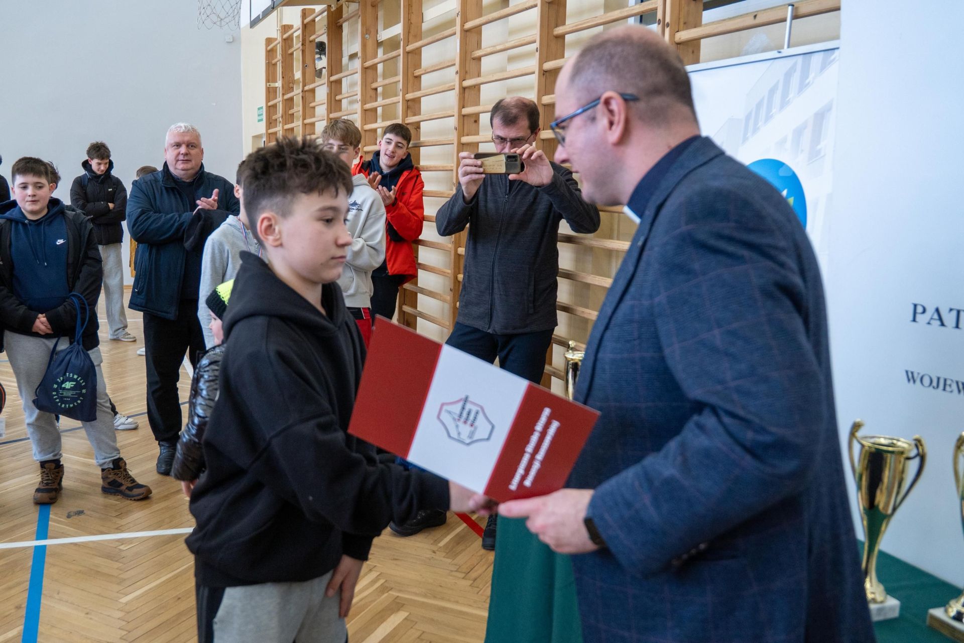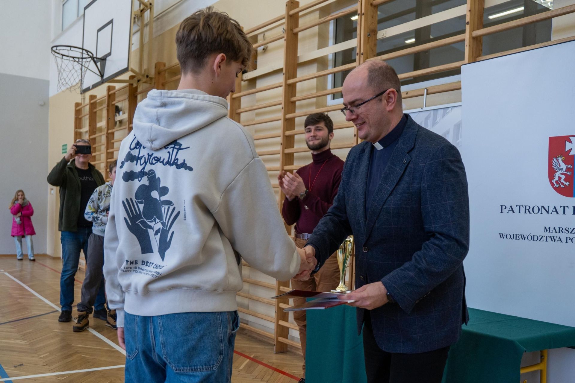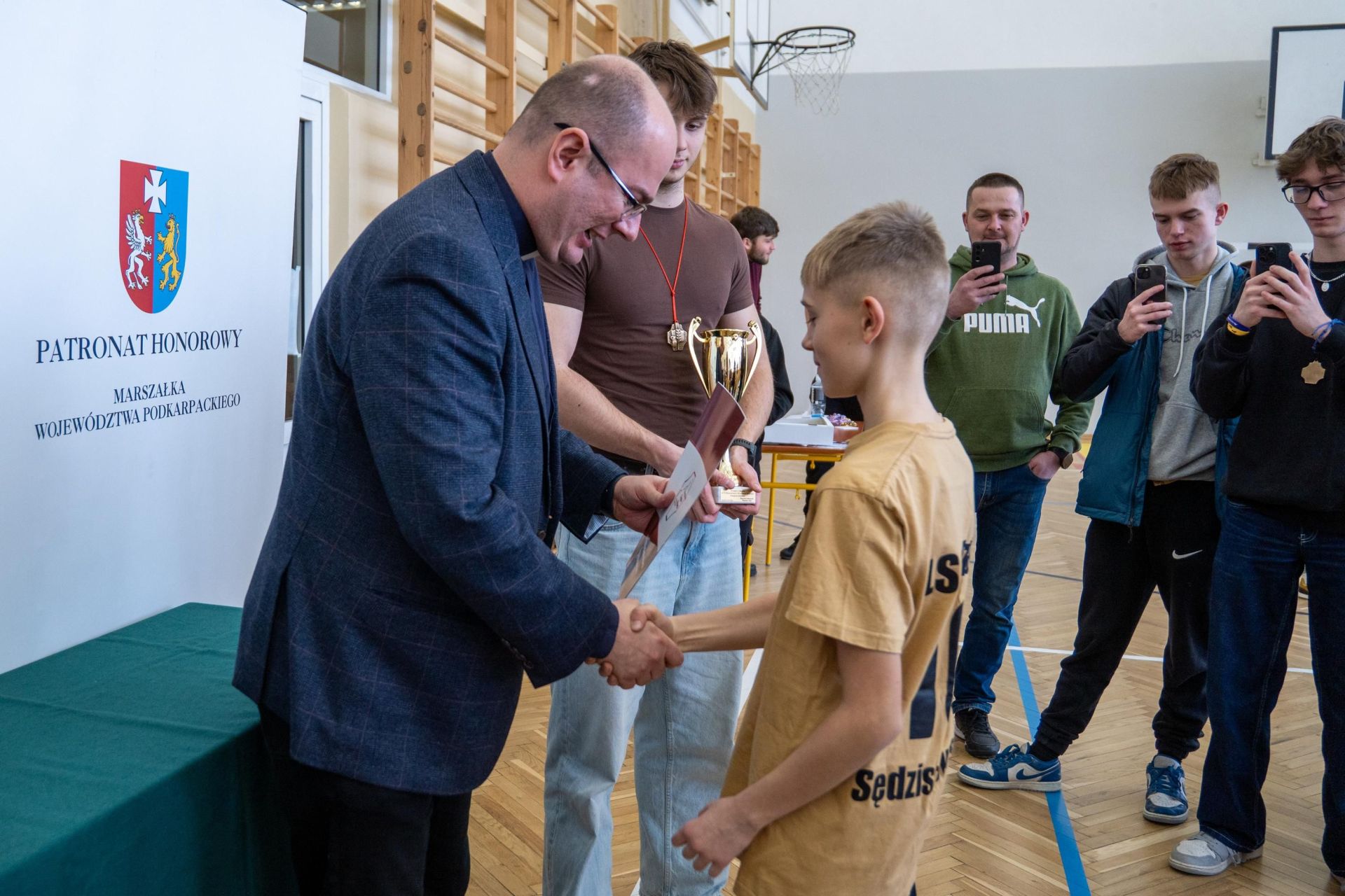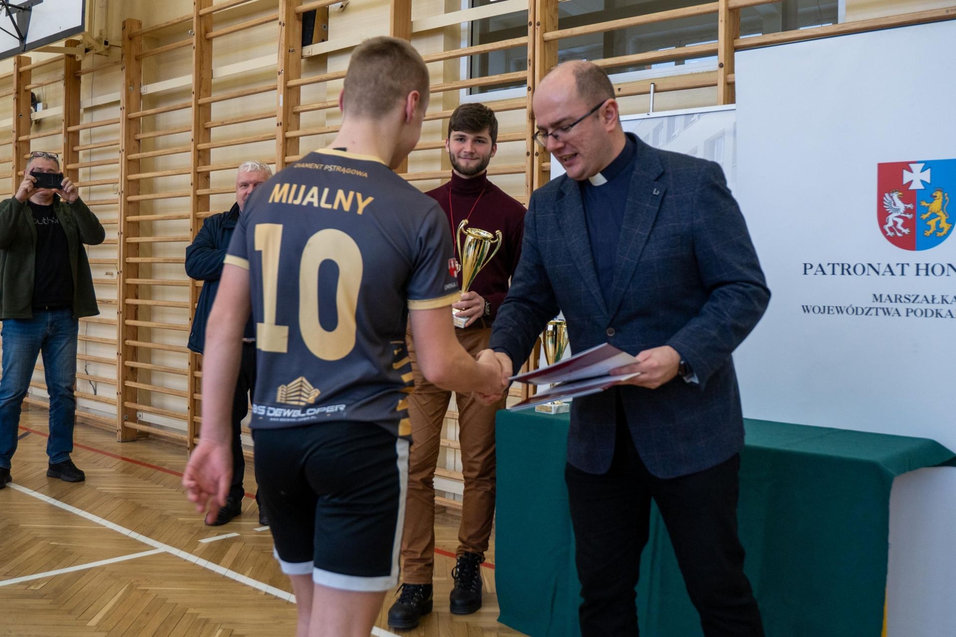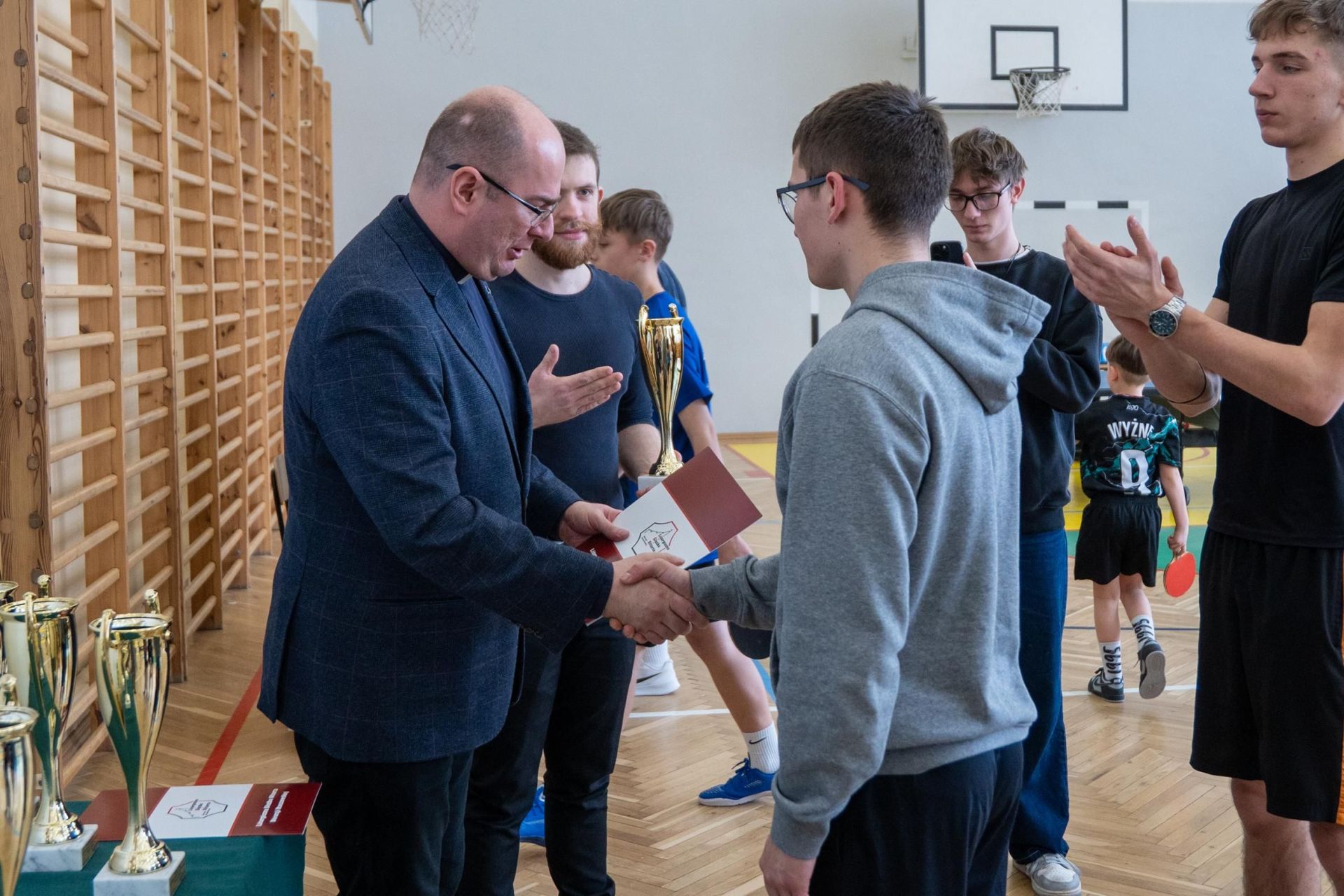 Następnie odbyło się losowanie wartościowych nagród przygotowanych przez panie Katarzynę Sołek oraz Barbarę Tereszkiewicz-Stach. Wśród nagród znalazły się m.in. koszulka Klubu KTS ENEA Siarkopol Tarnobrzeg, zestawy do gry w tenisa stołowego oraz słuchawki bezprzewodowe, które wzbudziły duże zainteresowanie i radość wśród uczestników.